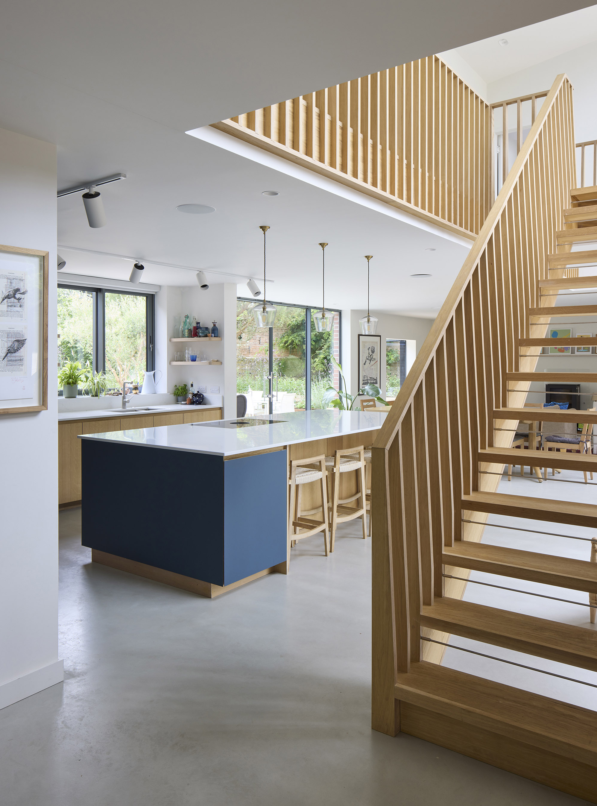 The brief called for a flexible home that harmonised with the existing architecture while integrating sustainable materials and technologies. Our approach focused on enhancing spatial flow, natural light, and energy performance, while respecting the property’s distinctive character and its setting within a conservation area.