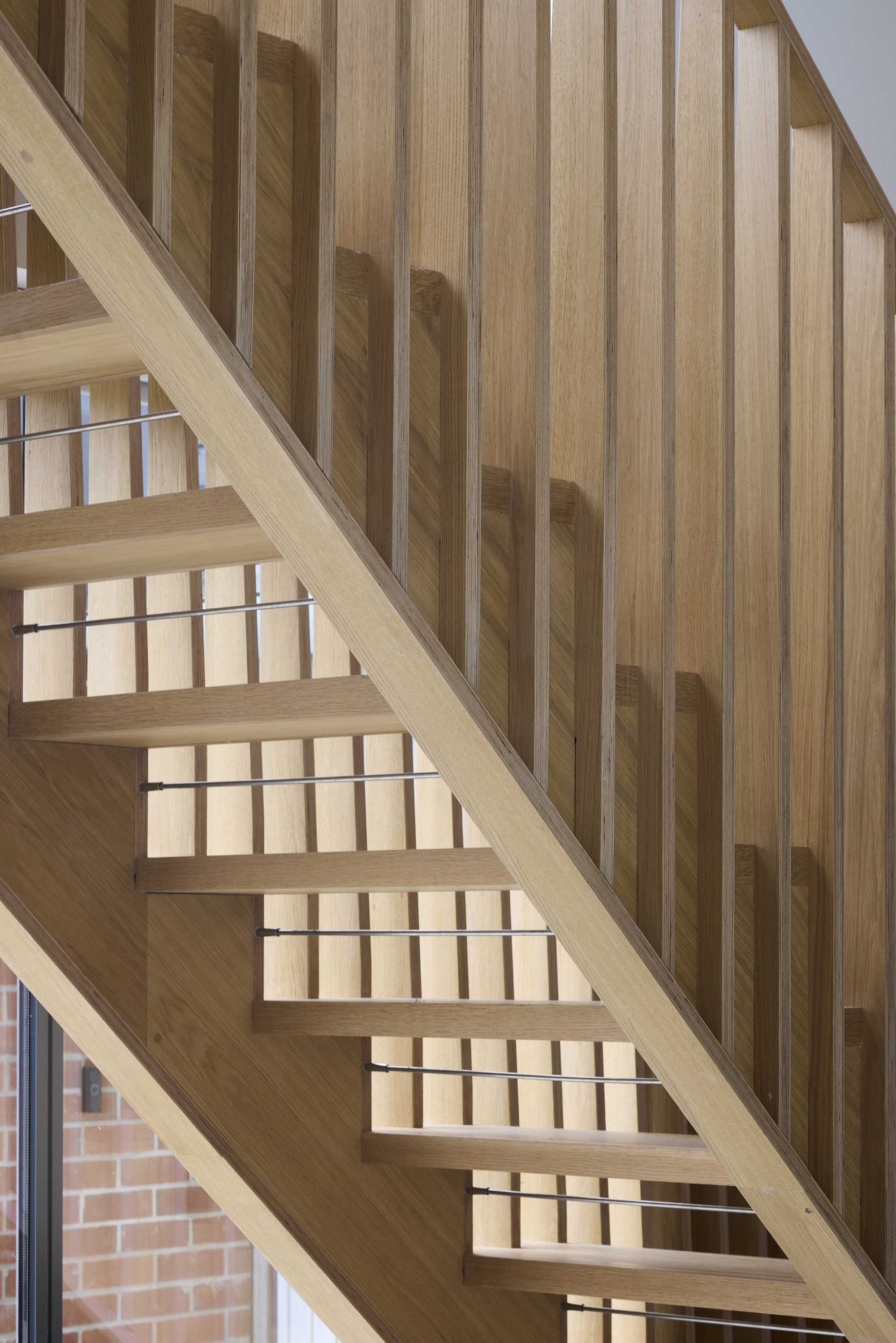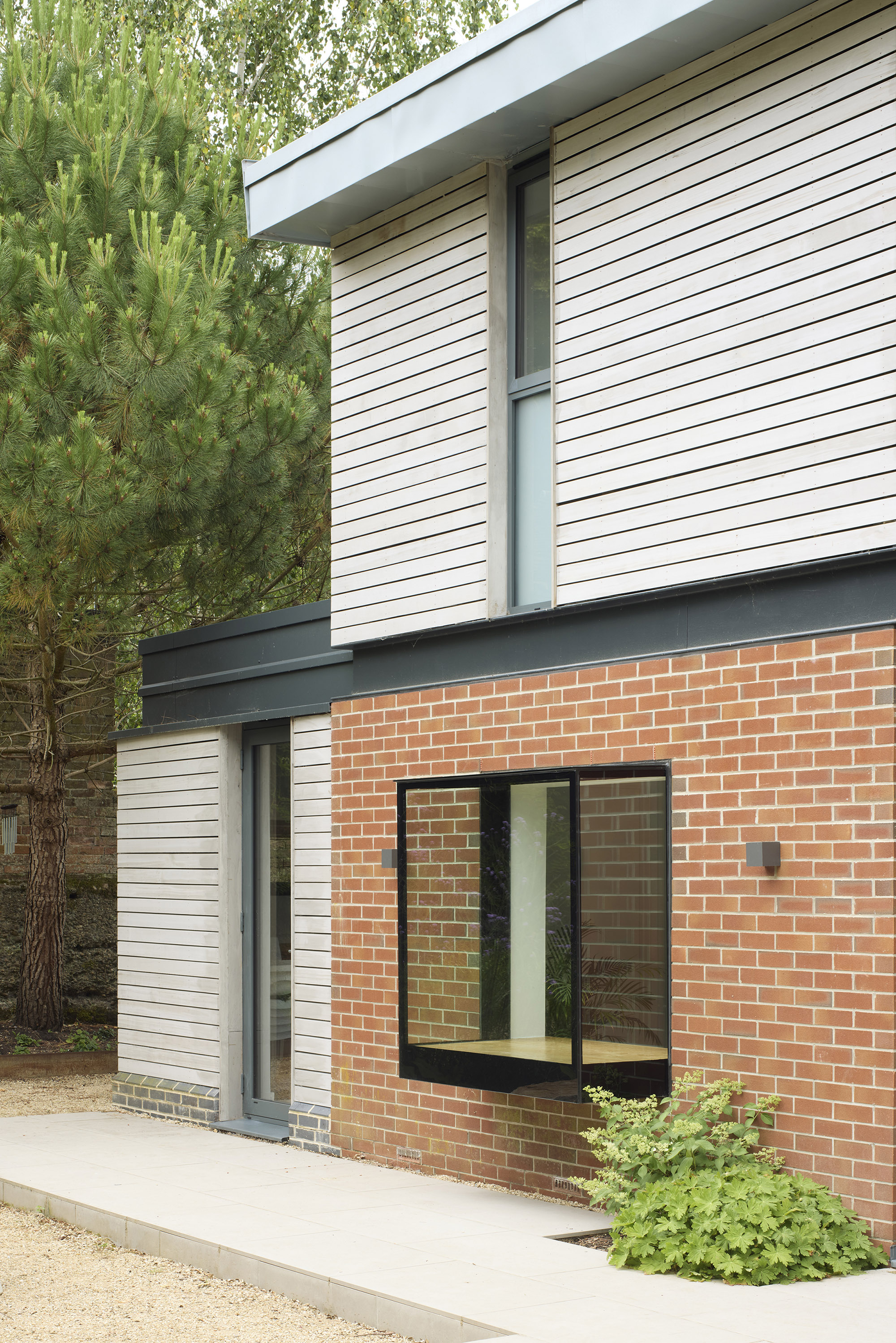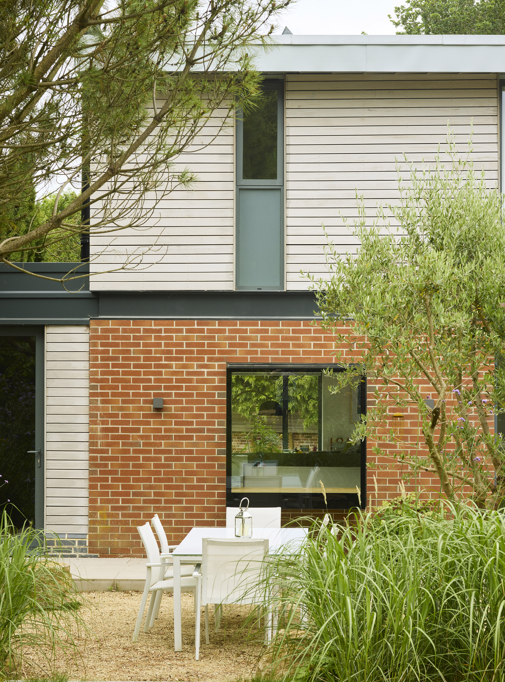 The extension draws on the language of the existing building, retaining its clean lines and horizontal emphasis, while softening the palette with natural timber cladding and neutrally painted masonry. Ground floor additions are designed to feel seamless, maintaining privacy without overwhelming the original form. Large-format glazing and carefully framed views bring in natural light and connect the home to its leafy surroundings.